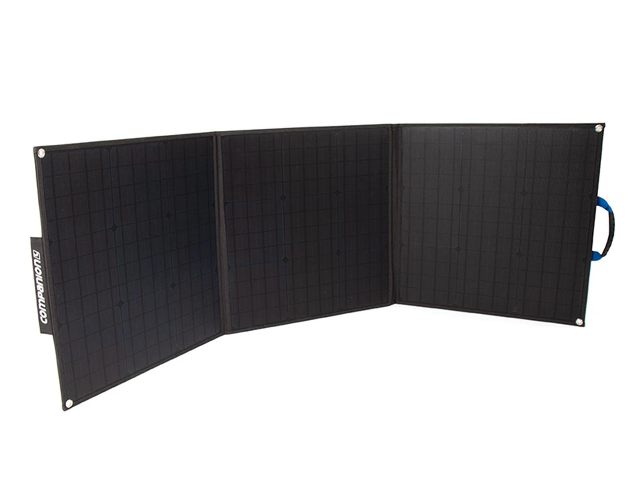- Chainable system; connect two 120W solar chargers together to double output