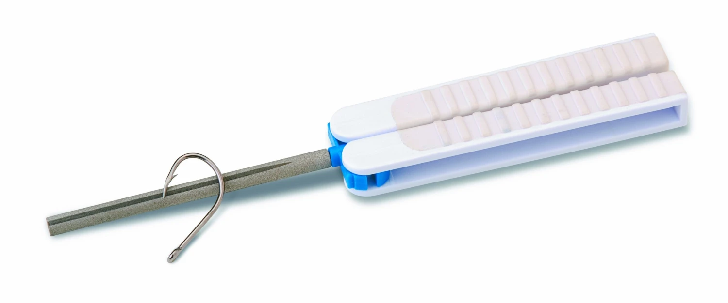 - Diamond grit sharpens even the hardest hooks