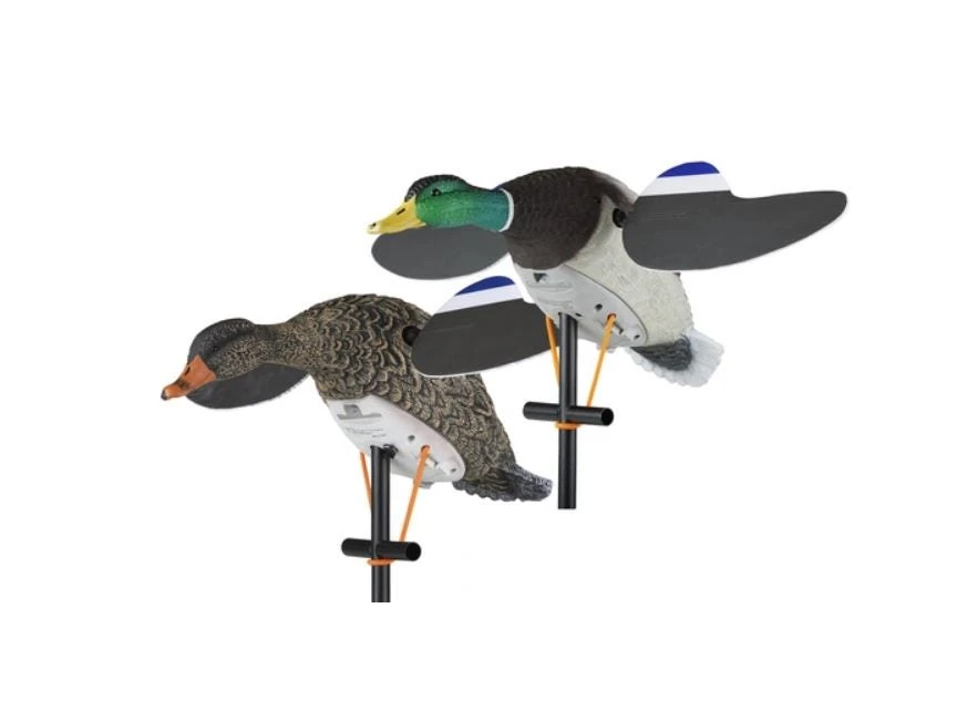 The Lucky Pair II includes: Ultra-realistic Mallard Drake and Hen with (2) 3 piece 42″ stakes, and (2) sets of corrugated magnetic wings.