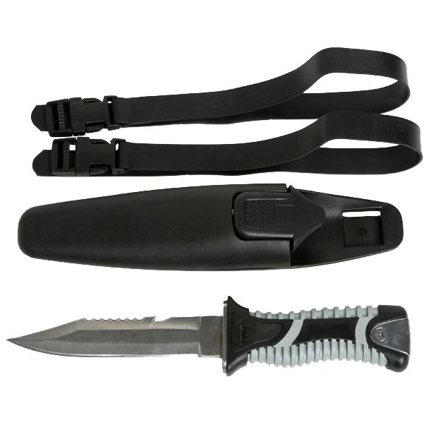 This Dive knife features a serrated blade on one side for versatile cutting options. The ergonomic handle offers a firm grip, with or without gloves- ensuring optimal control and precision.