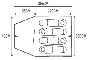 - Size 355 L x 250 W x 190 H (cm)