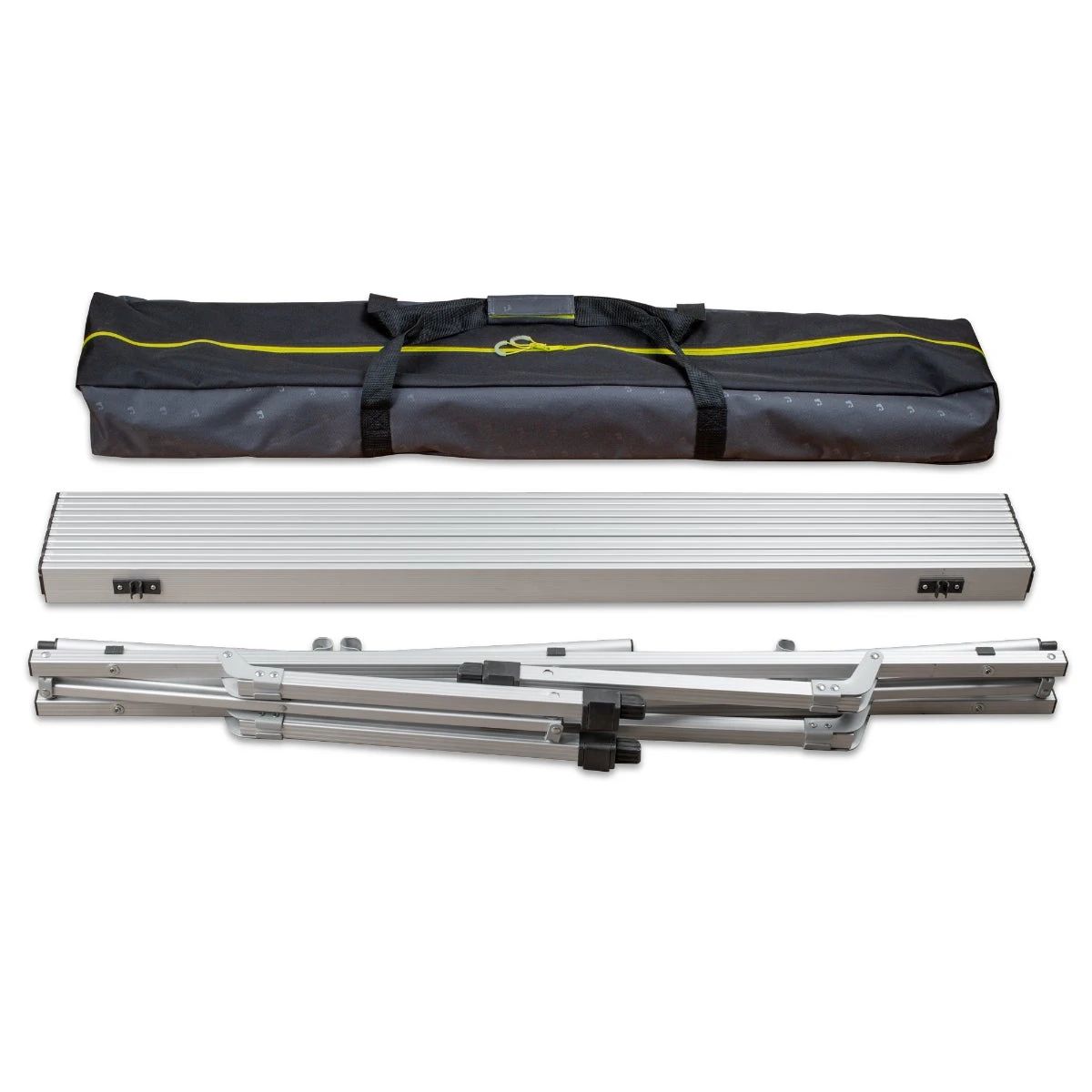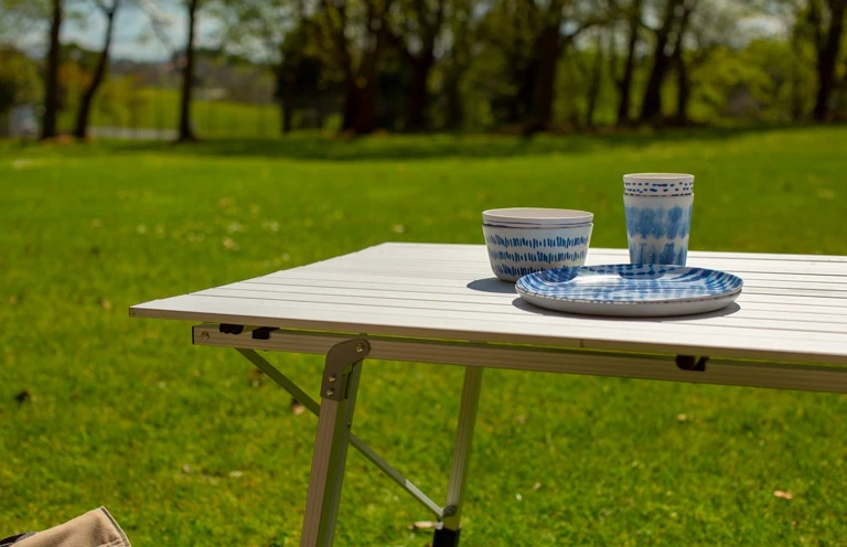 The Slatpac Large is a fantastic family meal table, card table, or preparation surface. Individual leg adjustments ensure the table sits flat on uneven ground and can be adjusted down low for use as a camp coffee table. The fully folding frame and removable tabletop allow everything to pack down small.Â